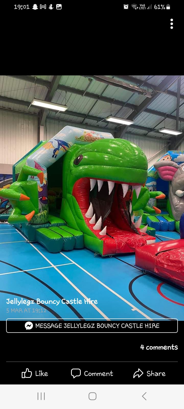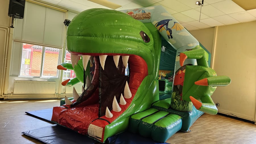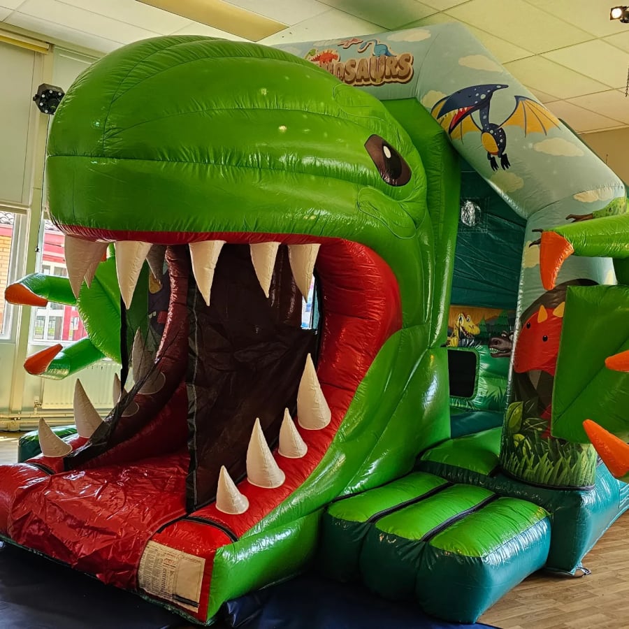 3D Dinosaur Bouncy Castle. 18.5 L x. 13.5.W x. 13ft H