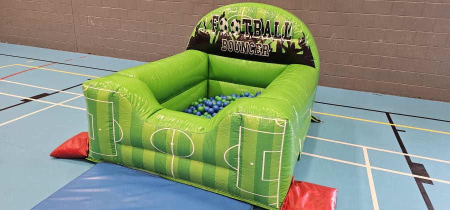 Football fanatic? Have a football presentation? Or just a child that loves football? Then this green 6ft x 7.5ft x 5ft Football Ball Pool is perfect for you. With the ball pool decorated at a football pitch at the front it is guaranteed to bring you a football match atmosphere. It also comes with balls that match the themes which are sanitised following health and hygiene regulations. If you are looking for something more adventurous then this ball pool also matches our 12ft x 15ft x 9.9ft Football Castle and Penalty Shoot Out, if this is something you’d be interested in then please view our Connecting Castlesfor more information.