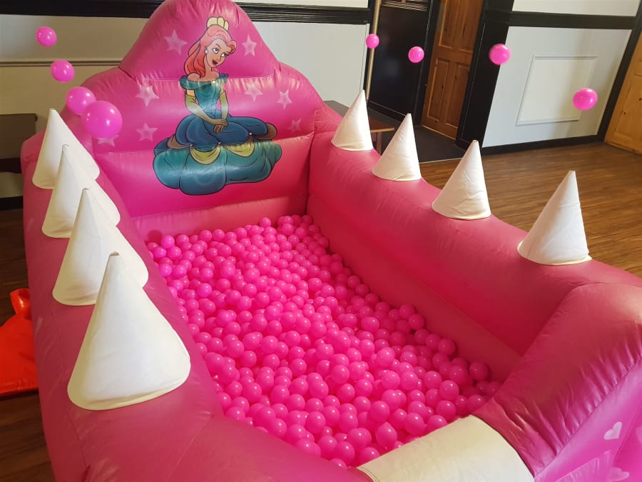 Our Fairy Princess ball pit is a great addition to any bouncy castle. with a fully inflated body the little ones will be safe inside it covered in the highest quality pink soft play balls. We highly recommend the princess package to complete the set which includes a h frame castle ideal for indoor events !