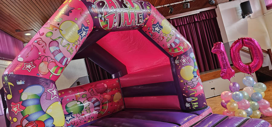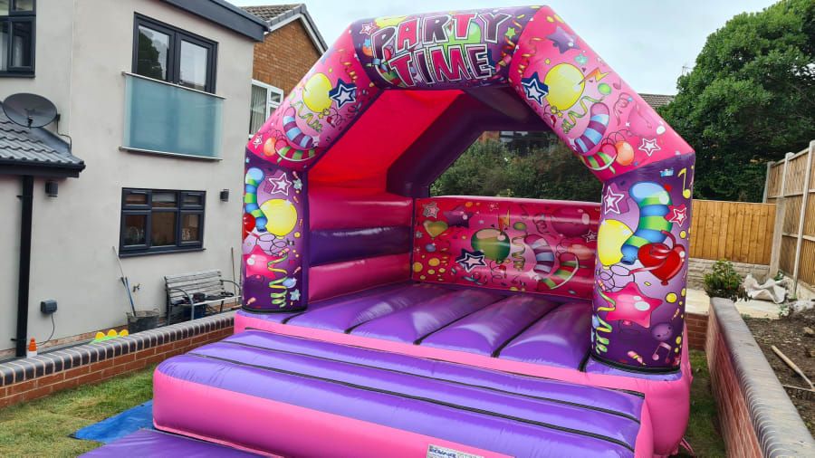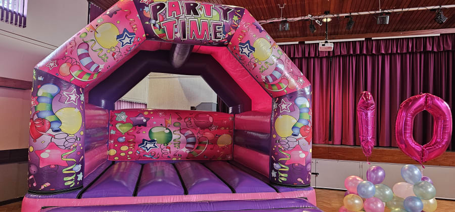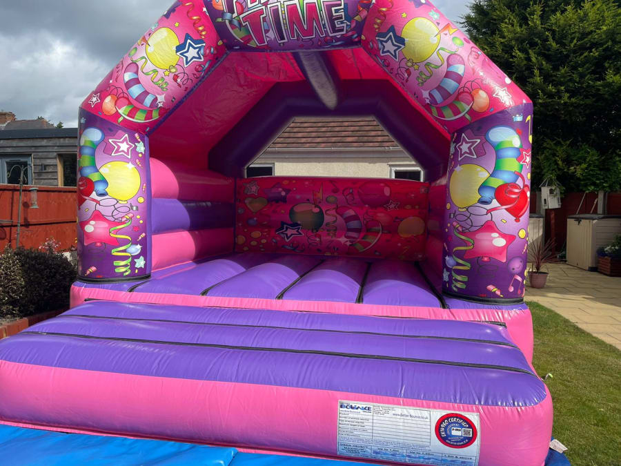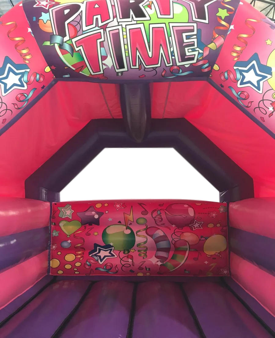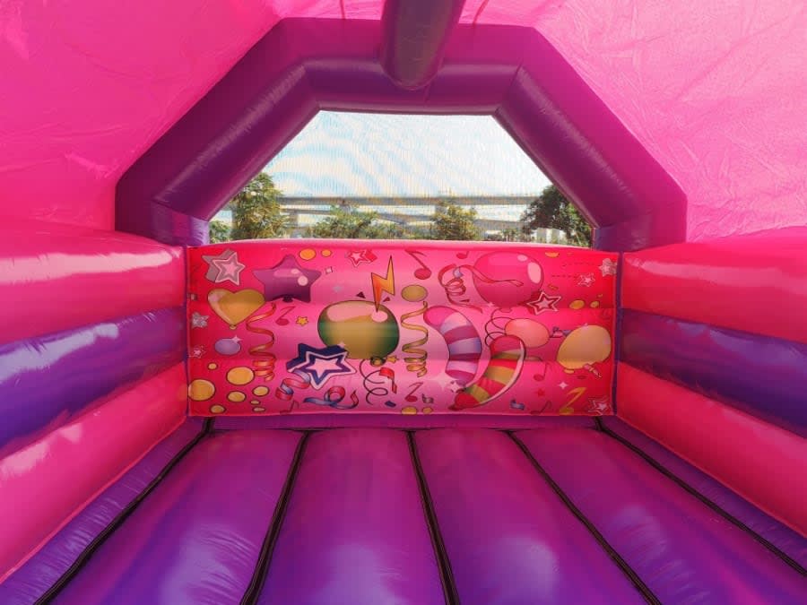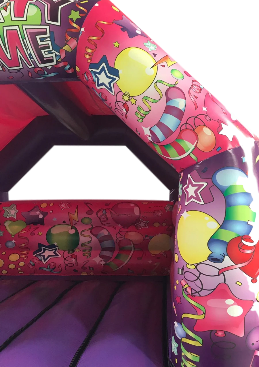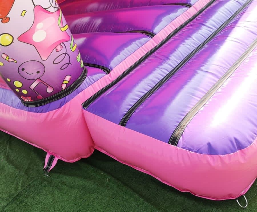 Little girl OR boy having a party/celebration but no theme? This 12ft x 15ft x 9.9ft Party Time Castle Pink is your go to! Covered in different coloured balloons and confetti this castle will fit any party or celebration. This 12ft x 15ft x 9.9ft Party Time Castle Pink also has a ball pool to match 6ft x 7.5ft x 5ft Party Time Ball Pool Pink and also a 42ft Party Time Obstacle Course if theirs more energy to burn off. Please view our Connecting Castles for more info.