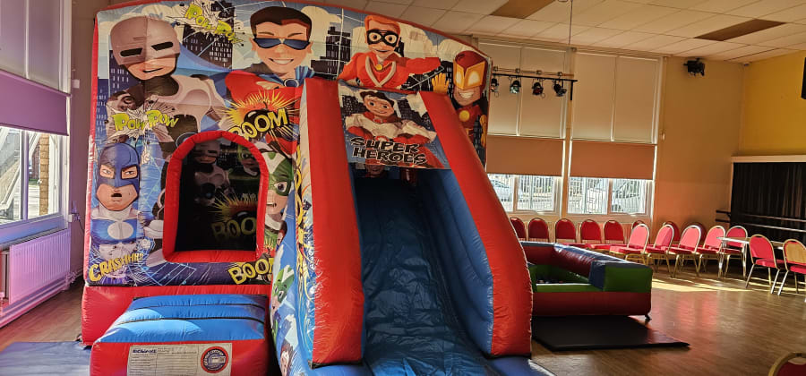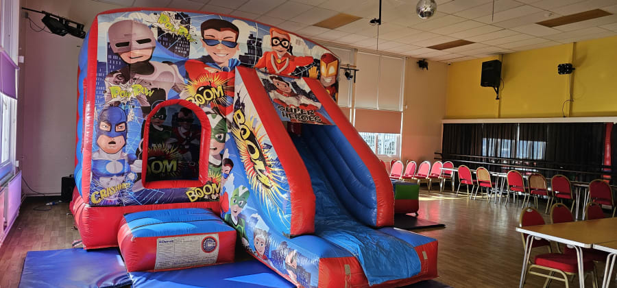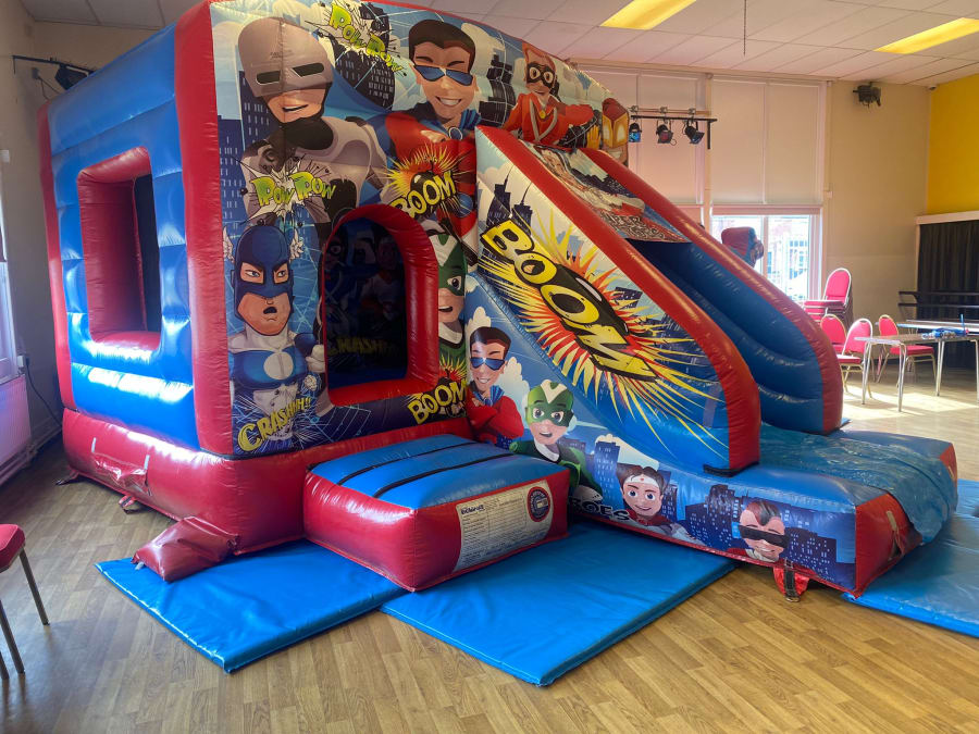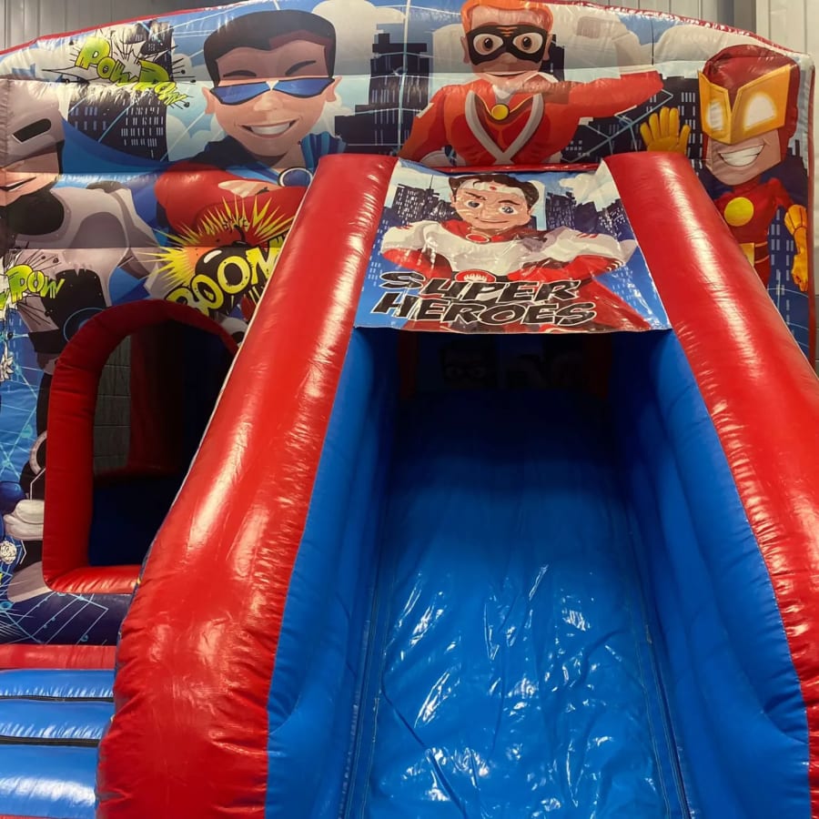 Superhero Front Combo Bouncy Castle With Slide 17 L x 12 W x 10.5 H