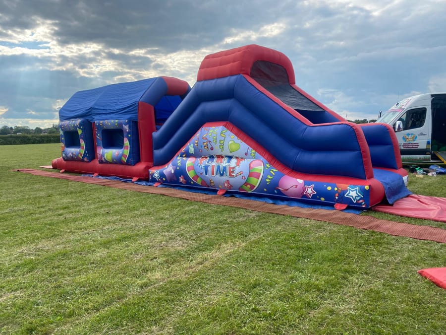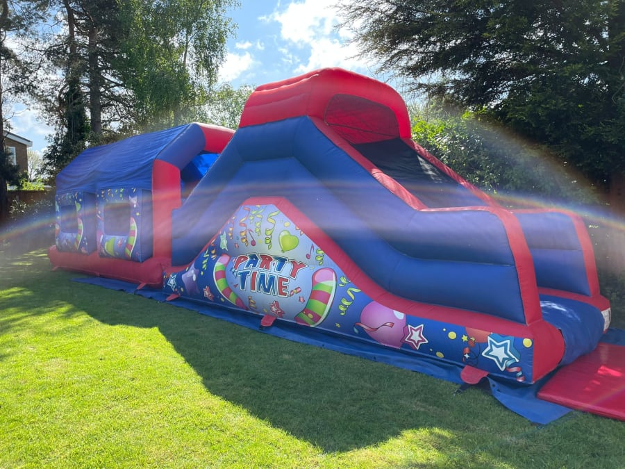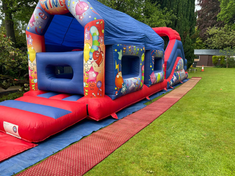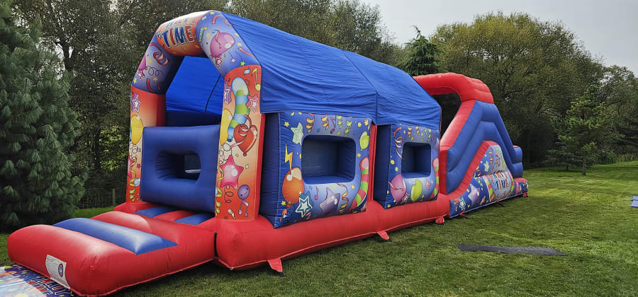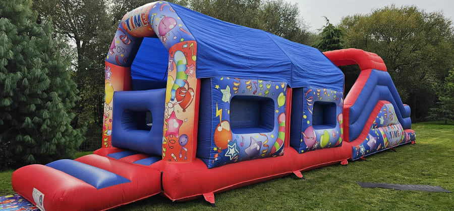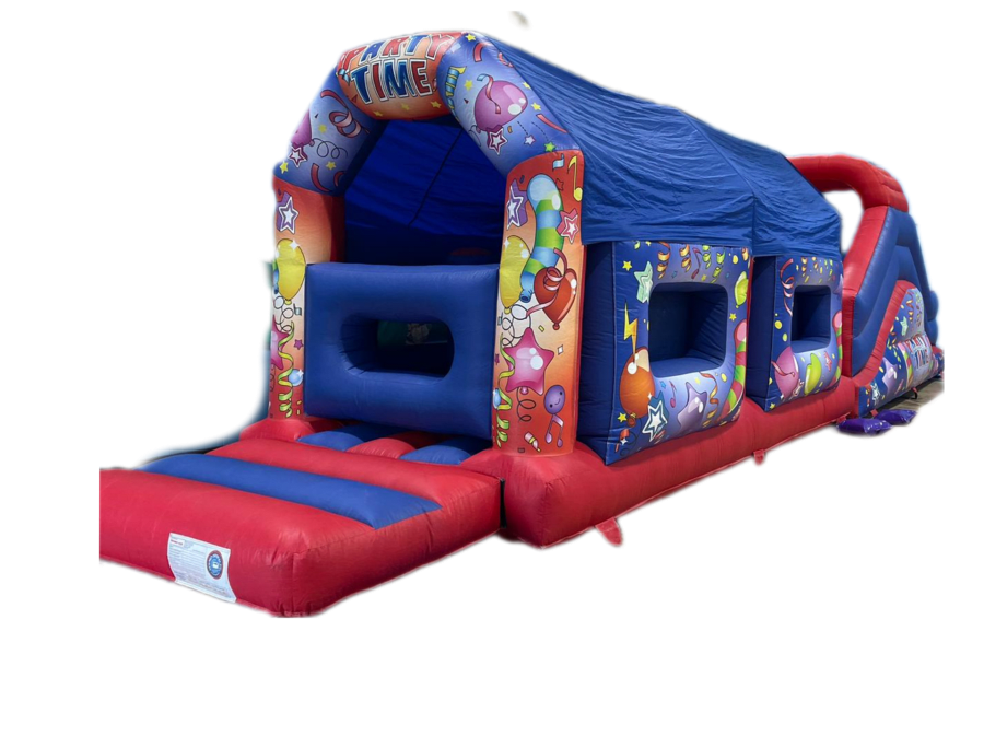 Looking for more than just a bouncy castle? Do you want something more challenging with a Adrenalin rush? Then this 42ft Party Time Obstacle Course is the thing for you! With the outside covered in multiple colours and covers in balloons it’s sure to set the scene for your party\event. If you were looking to go all out then this obstacle course fits perfectly with our 7ft x 5ft x 4ft Party Time Ball Pool , 15 x 12 H Frame Party Time Bouncy Castle red & bl and Party Time Play Pen With Matching Soft Play if the full set is something you would be interested in then either view our Packages for more information or feel free to Contact Us and we will be happy to help.