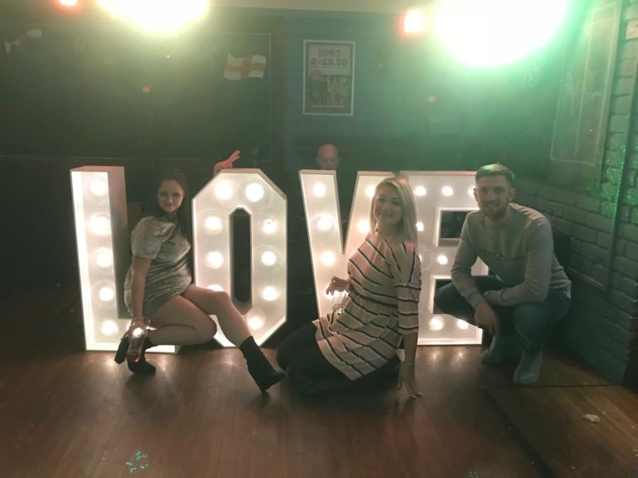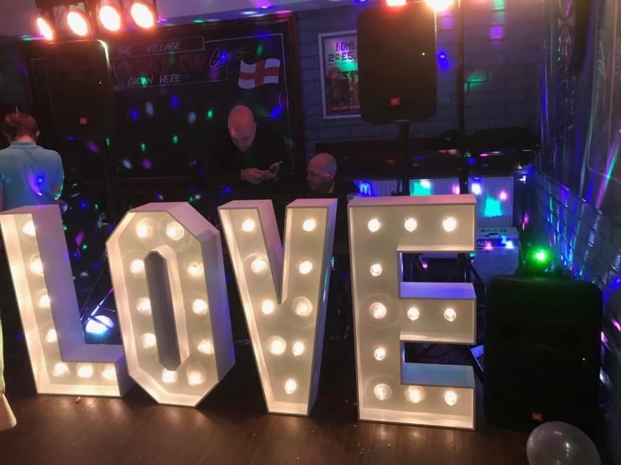 Our light up love letters are ideal to add onto party packages and to hire out for that big special day YOUR WEDDING. Our love letters are 4ft in height and are floor standing, they are fully remote controlled and have a LED multi colour changing function on them. We have two different sets of love letters which are slightly different to each other so please be specific when booking with the team so they can get correct details of the ones you want.